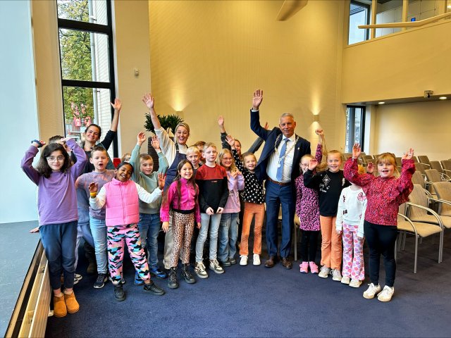 In onze gemeente ontbeten 7 oktober 26 kinderen uit groep 5/6 van basisschool Breedeweg met locoburgemeester Alex ten Westeneind in de raadszaal van het gemeentehuis.