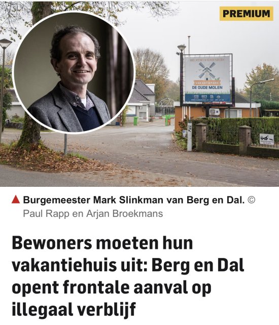 Waarom zou Berg en Dal dat eigenlijk doen, de frontale aanval openen op de eigen inwoners? Dat klinkt nogal heftig en moeilijk voor te stellen. Hoeft niet: het is zachtgebakken kullekoek! Hoe de gemeente wèl met kwetsbare parkbewoners om wil gaan staat gek genoeg in het artikel zelf netjes vermeld. Ook verder is op de inhoud van het stuk nog helemaal niet zoveel aan te merken. Nee, het venijn zit in de misleidende kop die boven het stuk is geplaatst. Zo werkt de commercie. Het is de bedoeling dat u denkt dat er heel wat verschrikkelijks aan de hand is, en snel op het artikel ‘clickt’. Dat levert dan advertentiegeld op en daar brandt de redactiekachel van.