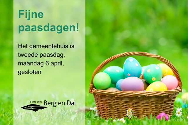 HomeInwonersNieuws en bekendmakingenNieuwsGemeentehuis op tweede paasdag geslotenGemeentehuis op tweede paasdag gesloten27-03-2026, 15:08Het gemeentehuis is tweede paasdag, maandag 6 april, gesloten. We wensen u fijne paasdagen!Bekijk hier onze openingstijden.