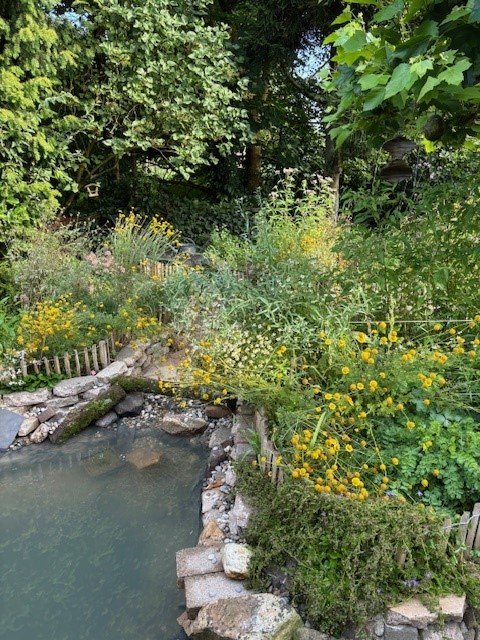 U kunt uw oude tuintegels ook een tweede leven geven. Zo heeft een inwoner van onze gemeente een deel van de oude tegels gebruikt om de rand van zijn vijver te maken. Op de foto ziet u het resultaat: een mooie, natuurlijke vijver! De overige tegels heeft hij laten ophalen door de Tegeltaxi.